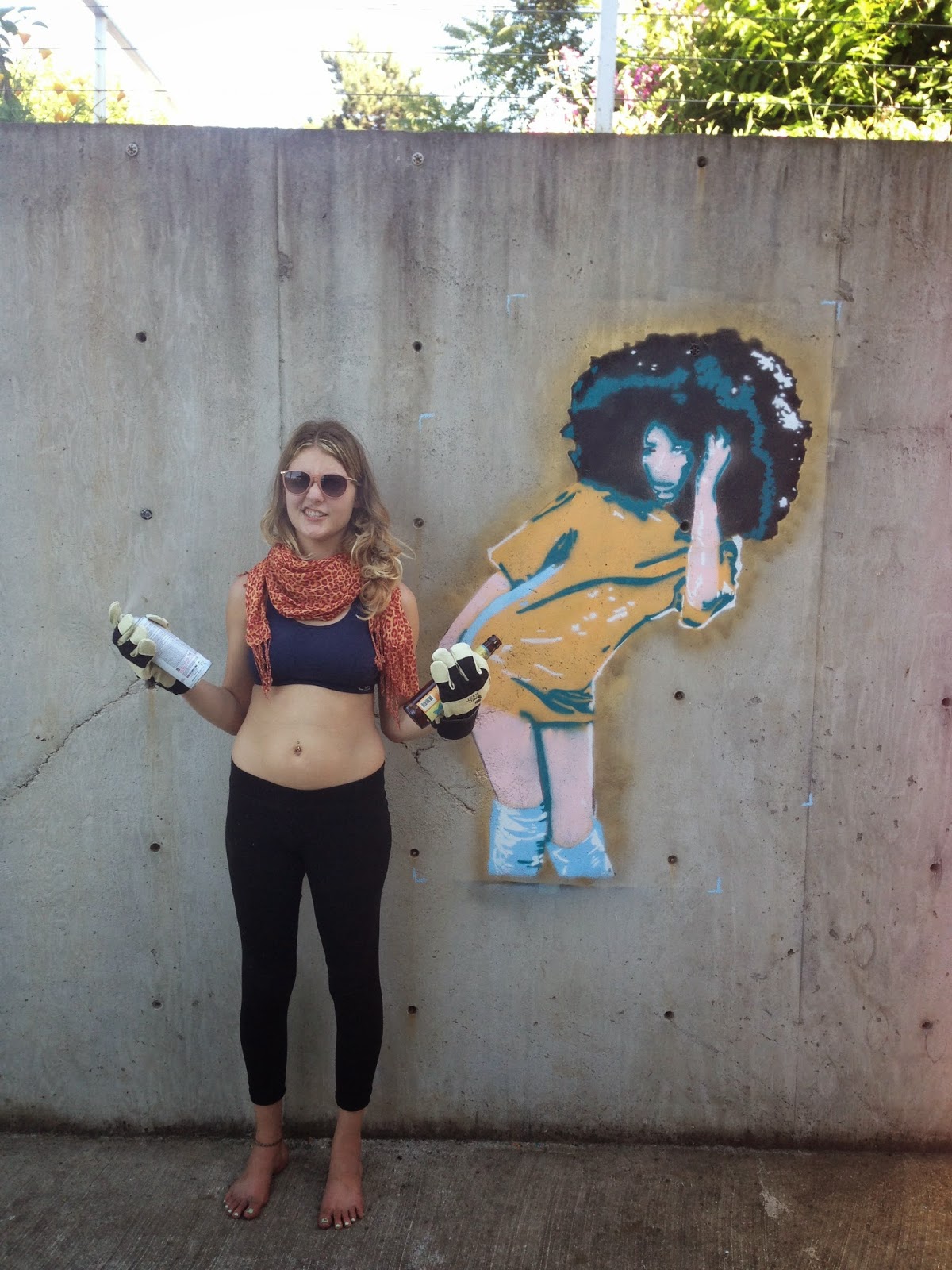 Somehow my stepmom convinced my pops to let me spraypaint the side of our house, even though this was my first ever attempt at stencil-making on my own. Thanks Roberta!